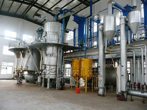 花生榨油機生產過程中往料斗處回油產生原因:1.餅調得過薄。2.油料含油過多,油液不能及時排出。3.油槽堵塞。4.元排,條排過緊。 排除方法:1.放大出餅間隙,增加出餅厚度,將餅加入榨膛把油沖出。2.更換零件,選用壓榨高含油料的榨條,榨圈,或摻入部分干餅進行壓榨。3.通..